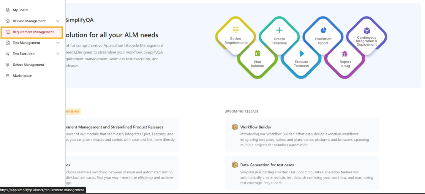 In the Requirement Management module of SimplifyQA, you can also create and manage Features, which are subsets of Epics. The entire market value of an Epic is broken down into different features, each forming an independent deliverable unit.&#x20;