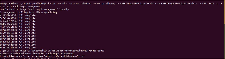 docker run -d --hostname rabbitmq --name qarabbitmq -e RABBITMQ_DEFAULT_USER=<username> -e RABBITMQ_DEFAULT_PASS=<password>