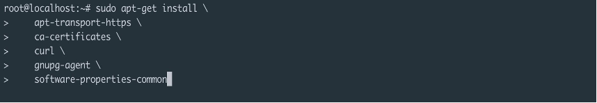 sudo apt-get install \ apt-transport-https \ ca-certificates \
