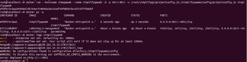 * Execute the below command to for changes to be made in SimplifyQARabbitMQ projectonfig.js file before running the simplifyRabbitMQ Docker image