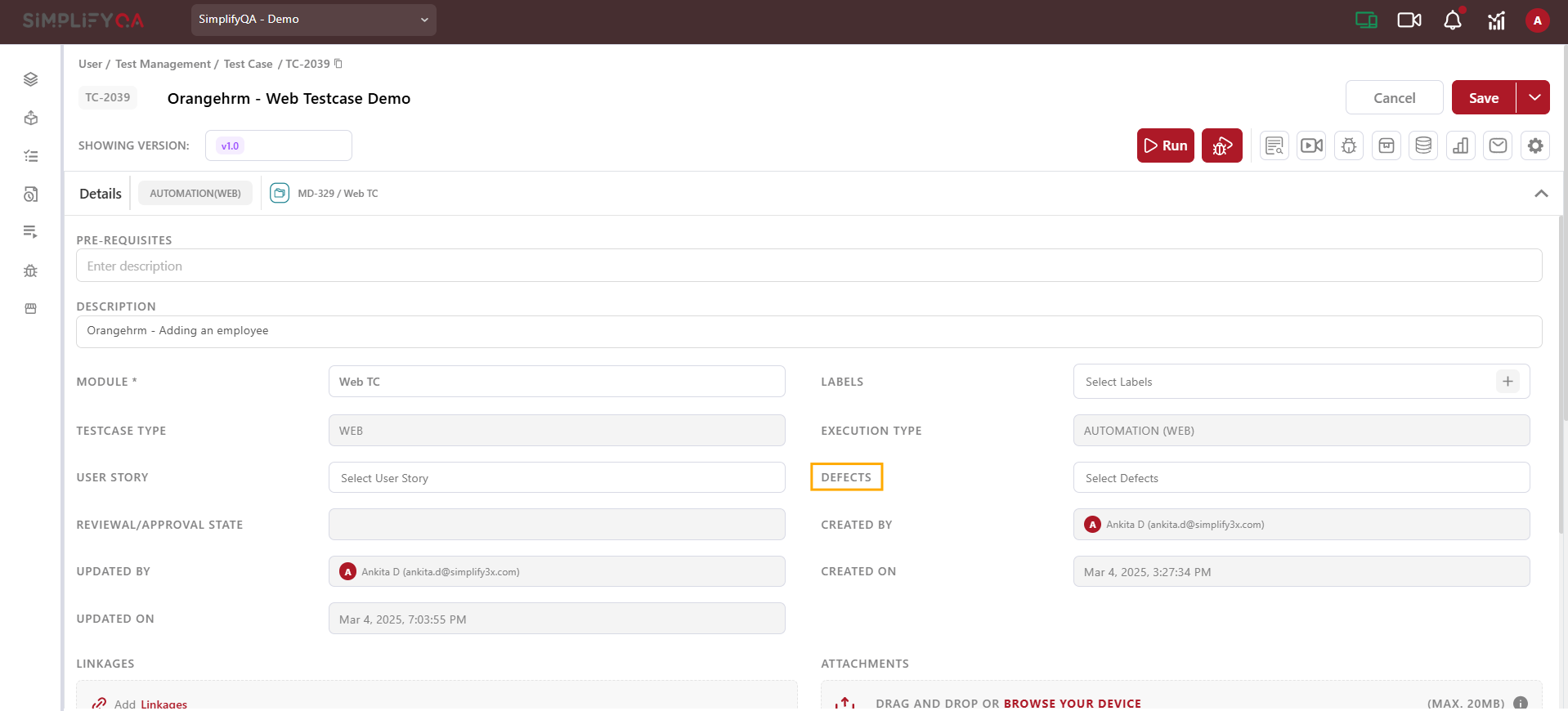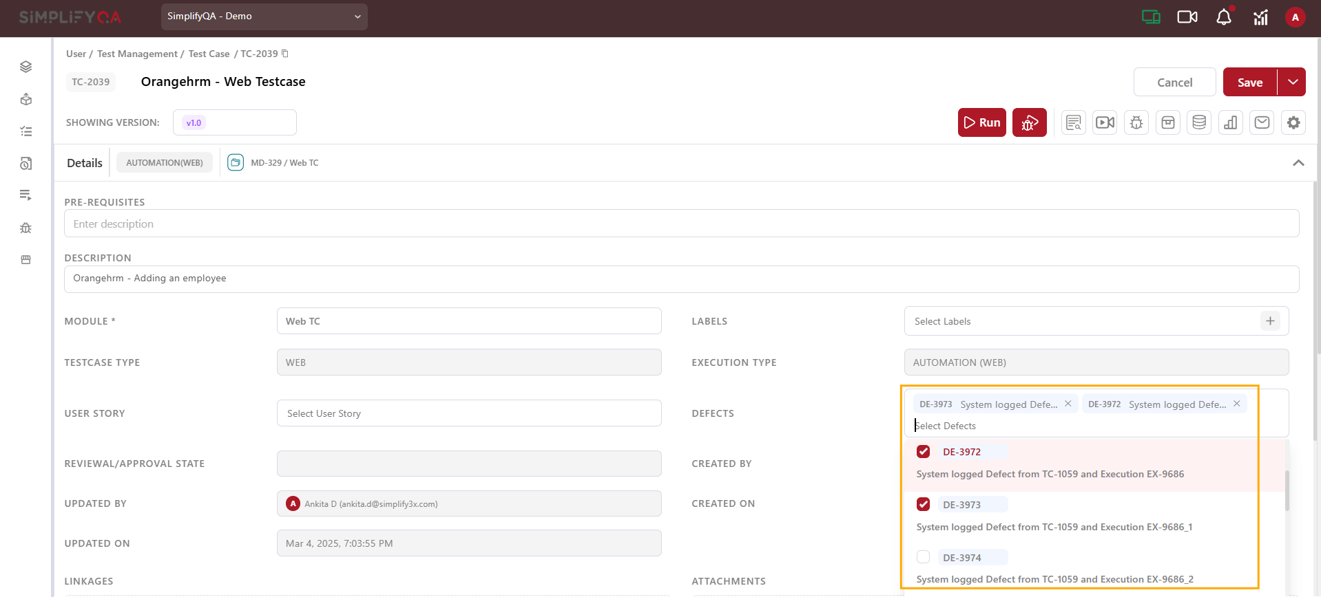 ### Steps to Link a Test Case to Defect in SimplifyQA