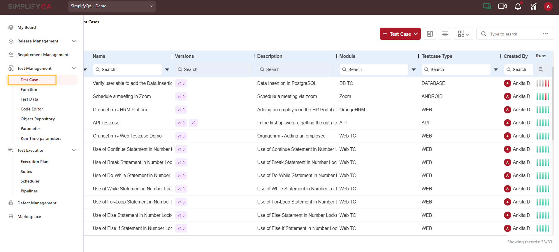<figure><img src="https://2640723101-files.gitbook.io/~/files/v0/b/gitbook-x-prod.appspot.com/o/spaces%2FMxErCxeVwmOt7GY9s22U%2Fuploads%2Fu26xSyfte96c90EF70RH%2FTest%20Case%20from%20left%20panel.png?alt=media&#x26;token=63305f54-4f1c-4a51-ace5-4a53de85393e" alt=""><figcaption></figcaption></figure>