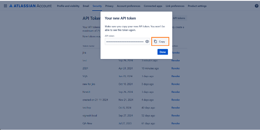 In this section, we'll guide you through on how to generate API token in Jira to configure integration.